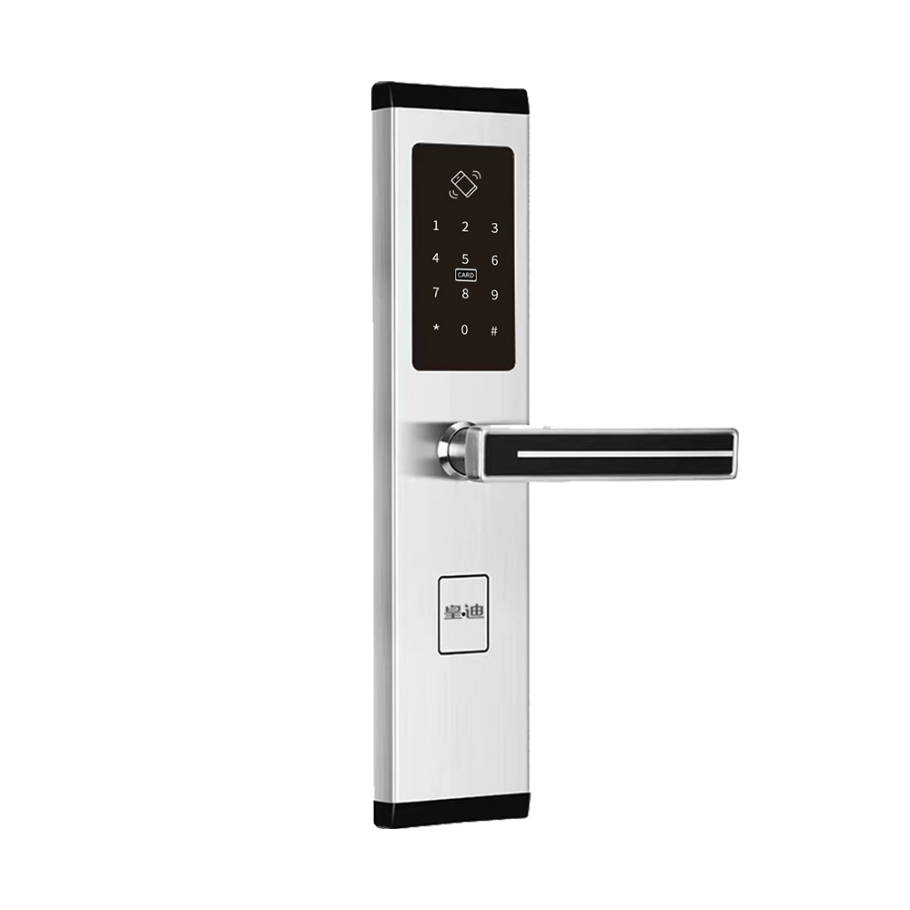 皇迪公寓民宿防盜門密碼鎖,主要針對(duì)防盜門設(shè)計(jì)的酒店智能鎖,不銹鋼材質(zhì),標(biāo)配通通鎖APP,可管理多套房源,手機(jī)APP遠(yuǎn)程控制,遠(yuǎn)程發(fā)送臨時(shí)密碼,開門記錄查詢等功能。
